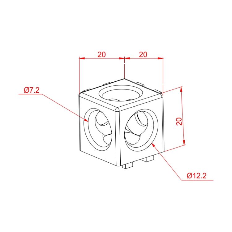 Enables corner connection of three profiles with a slot size of 6 mm.